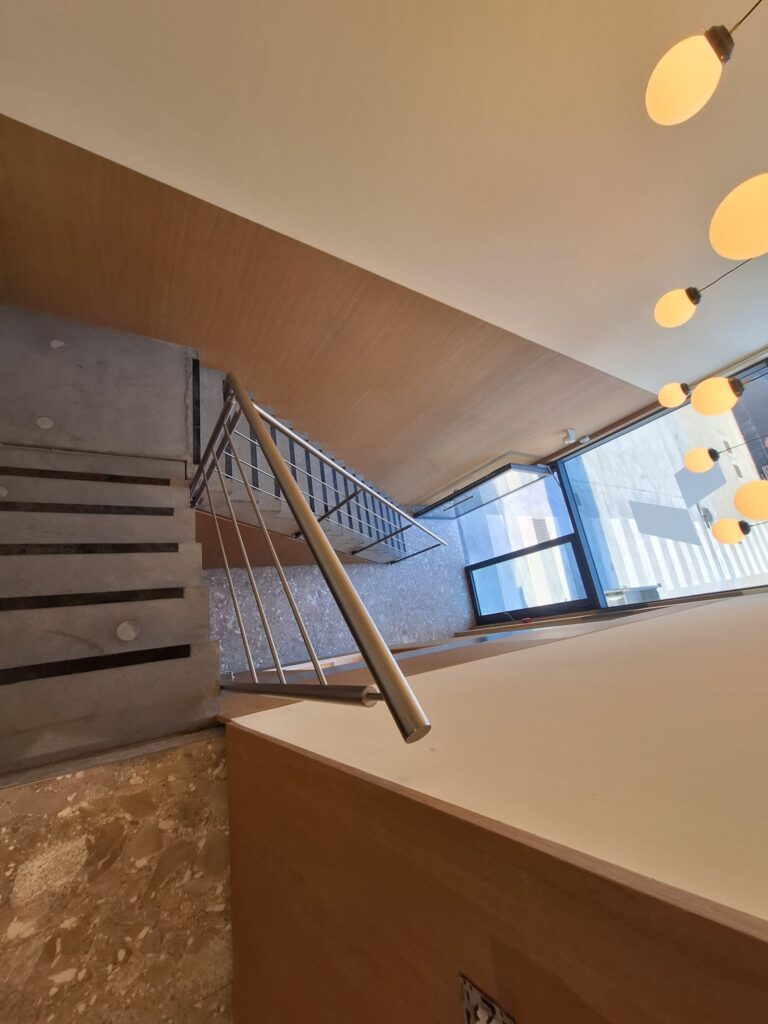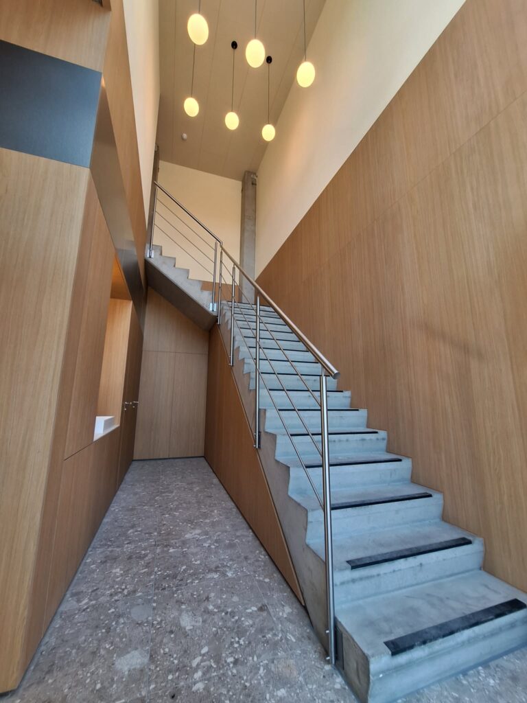 Met trots realiseerden en plaatsten wij deze inox trapleuning op maat voor Wopaco / Gesibois in hun nieuw gebouw en showroom te Sint-Pieters-Leeuw. Een strak en duurzaam ontwerp dat perfect aansluit bij de moderne uitstraling van het pand.